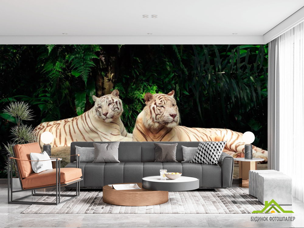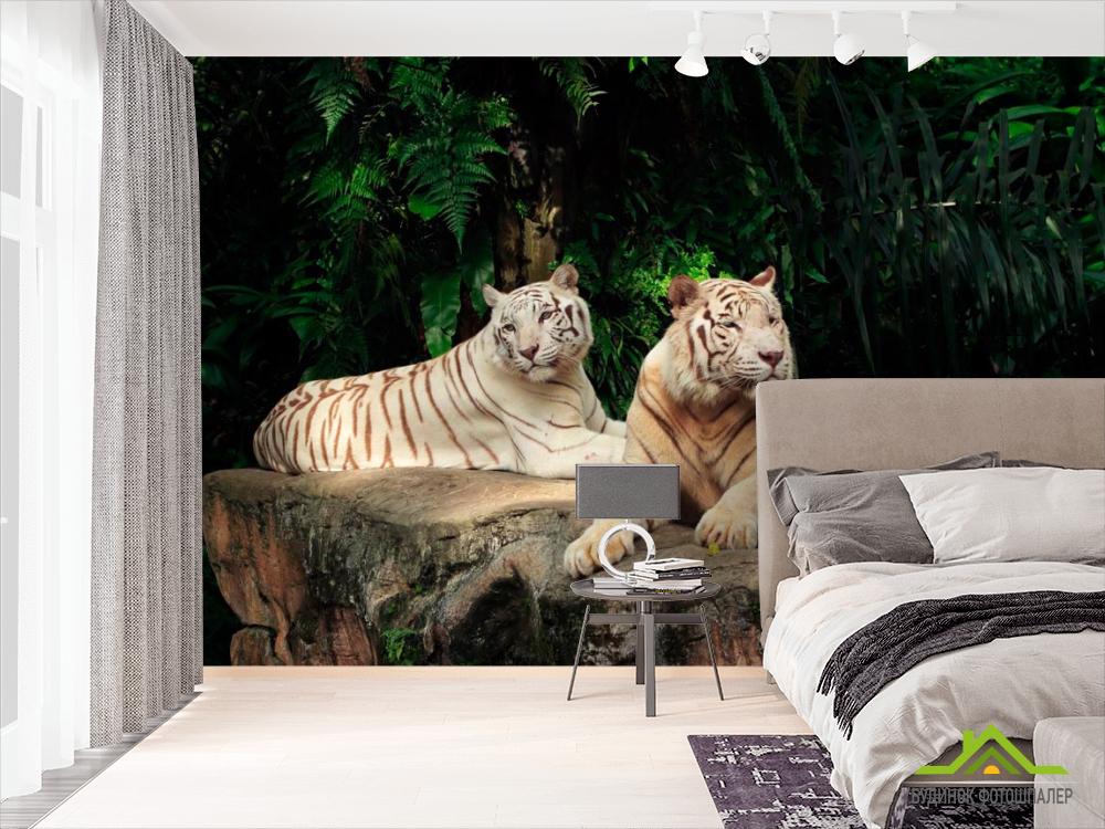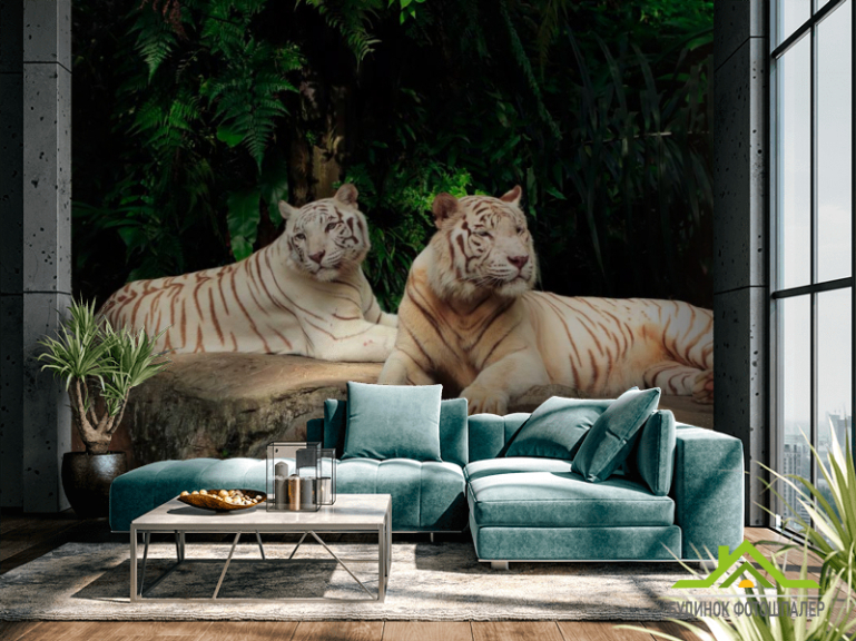 Фотообои Семейство белых тигров Фотообои Семейство белых тигров
