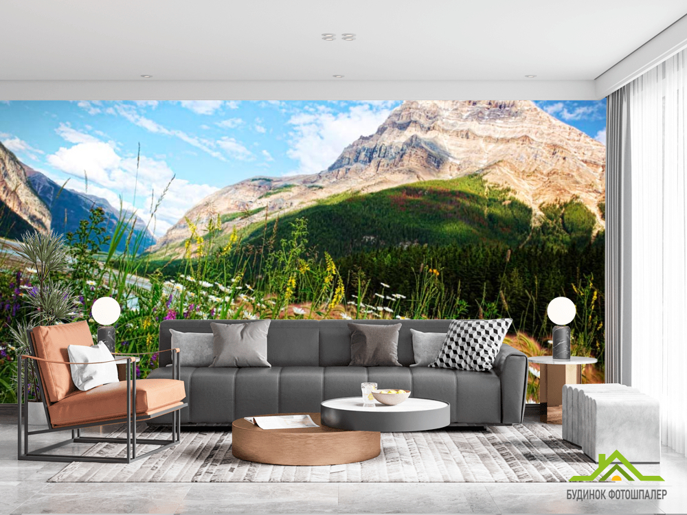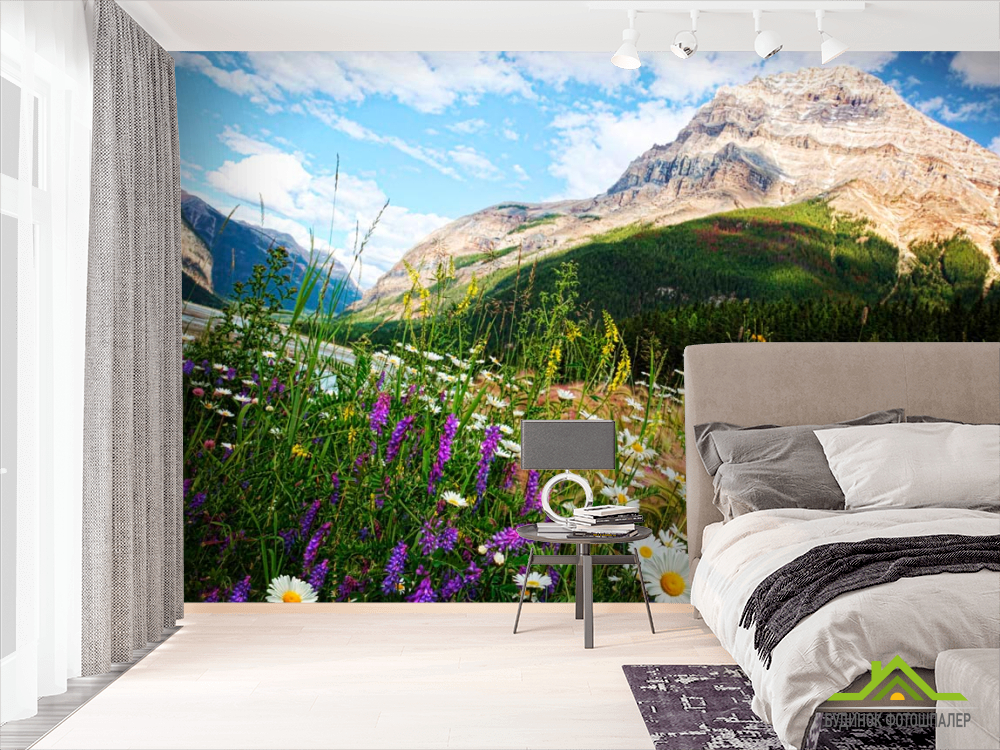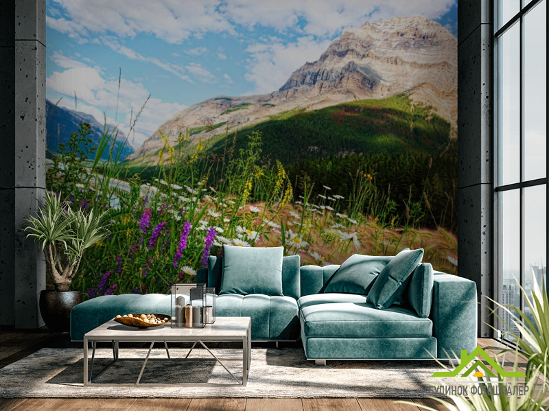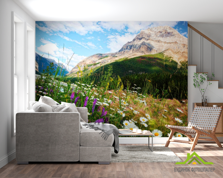 Фотообои Гора, небо, ромашки Фотообои Гора, небо, ромашки