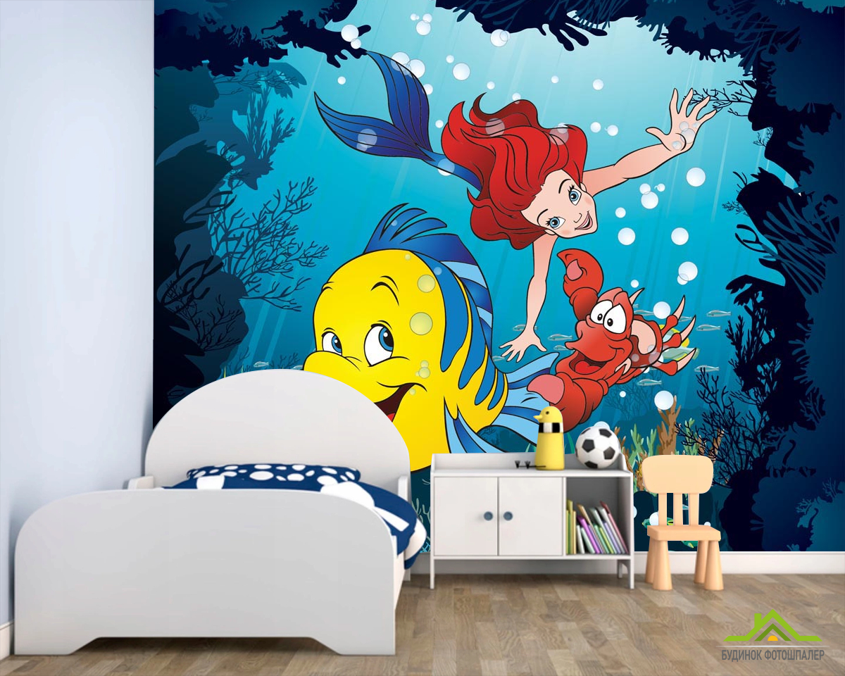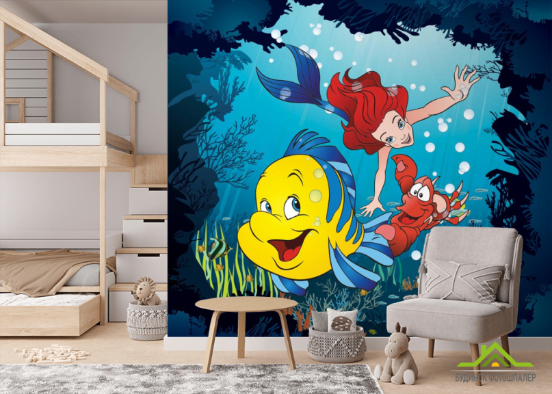 Фотообои Русалка, краб и рыбка Фотообои Русалка, краб и рыбка