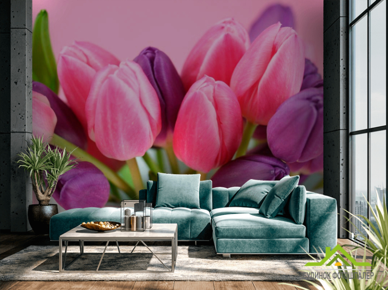 Фотообои Розовые и фиолетовые тюльпаны Фотообои Розовые и фиолетовые тюльпаны