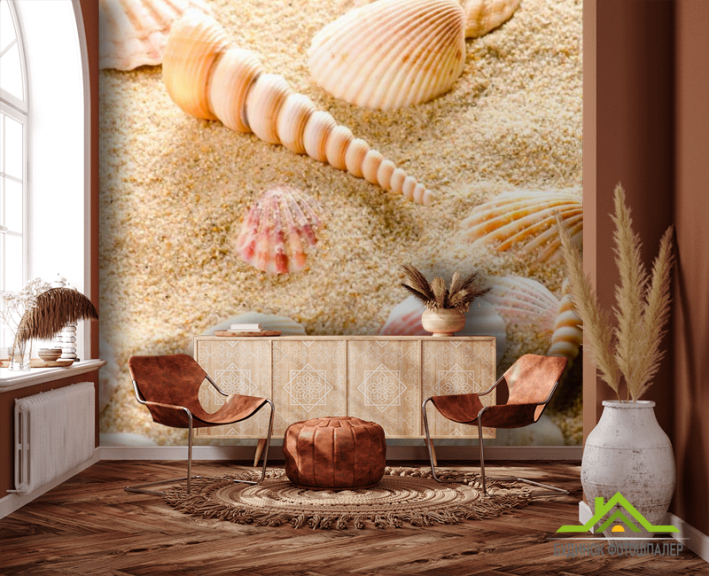 Фотообои Ракушки в песке Фотообои Ракушки в песке