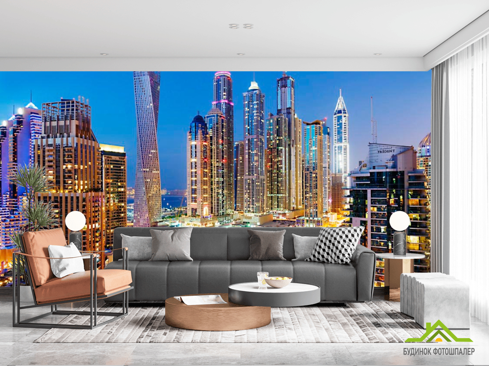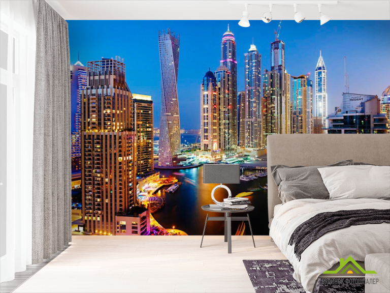 Фотообои Причал, ночь, высотки Фотообои Причал, ночь, высотки