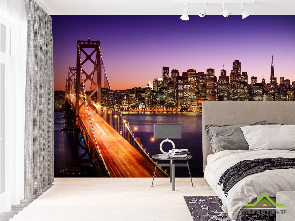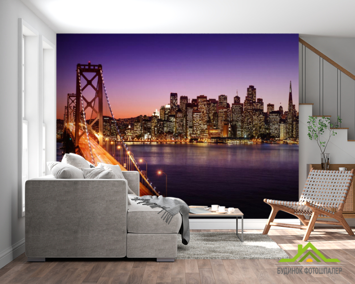Фотообои Огни, мост, многоэтажки