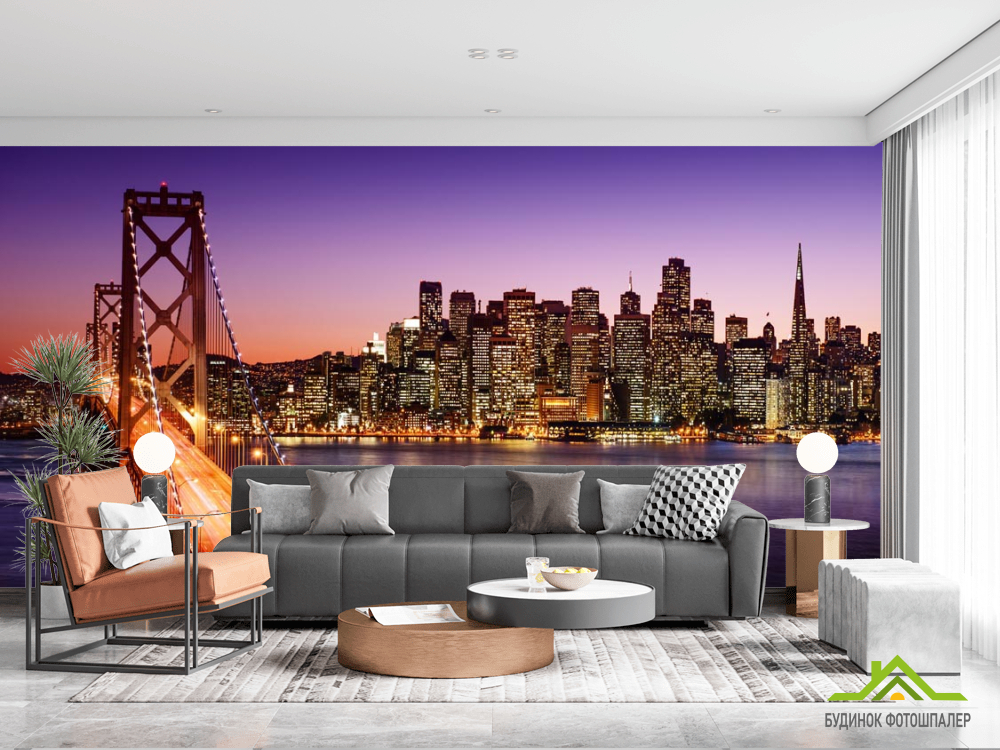 Фотообои Огни, мост, многоэтажки Фотообои Огни, мост, многоэтажки