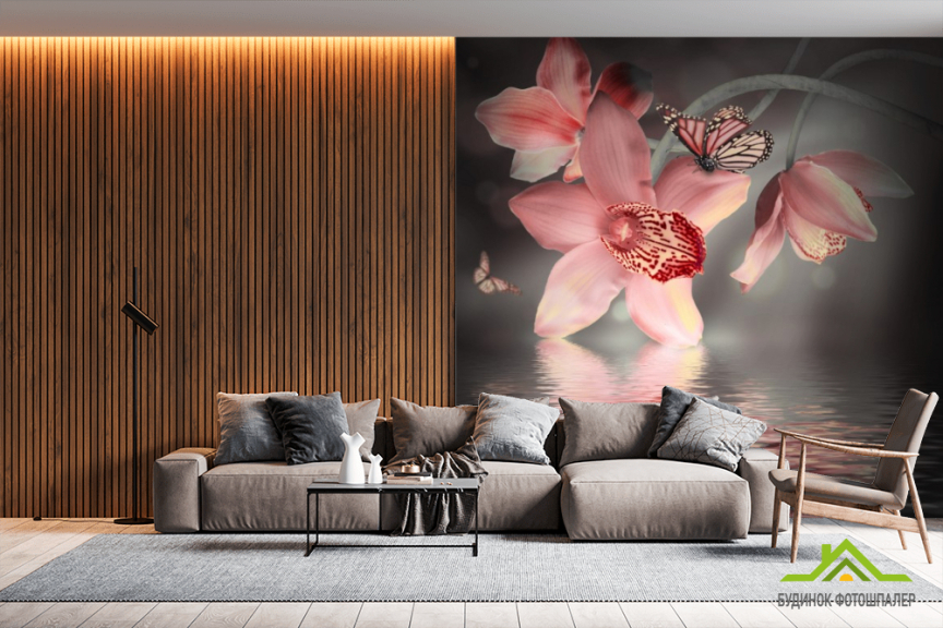 Фотообои Цветок с бабочкой Фотообои Цветок с бабочкой