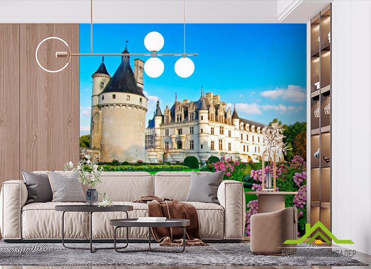 Фотообои Замок с клумбами Фотообои Замок с клумбами