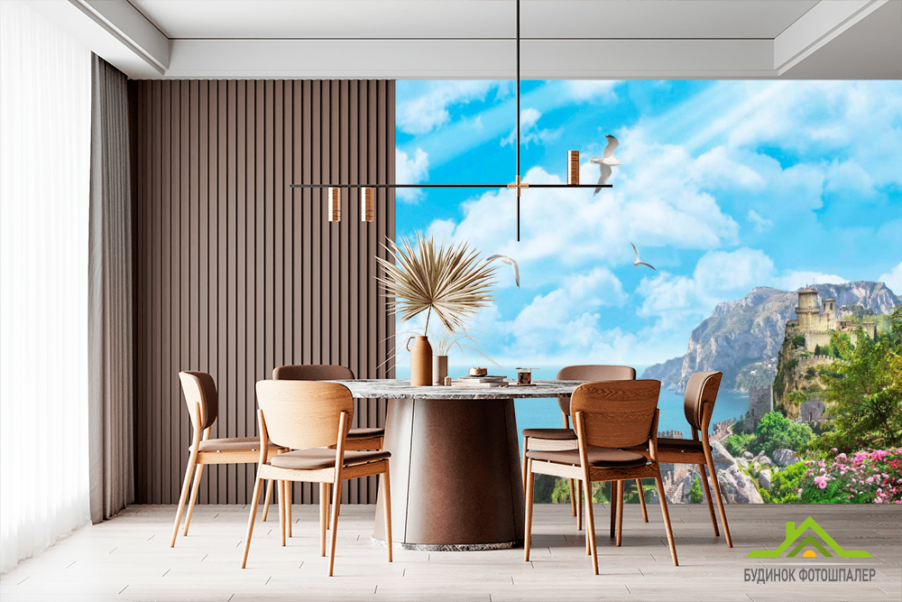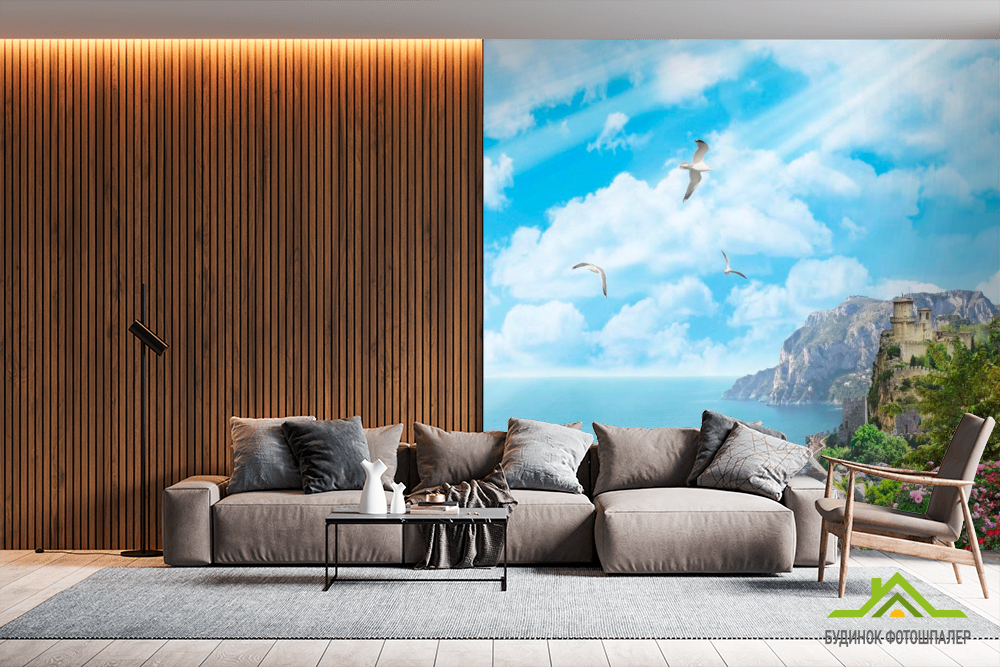 Фотообои Чайки, небо, замок Фотообои Чайки, небо, замок