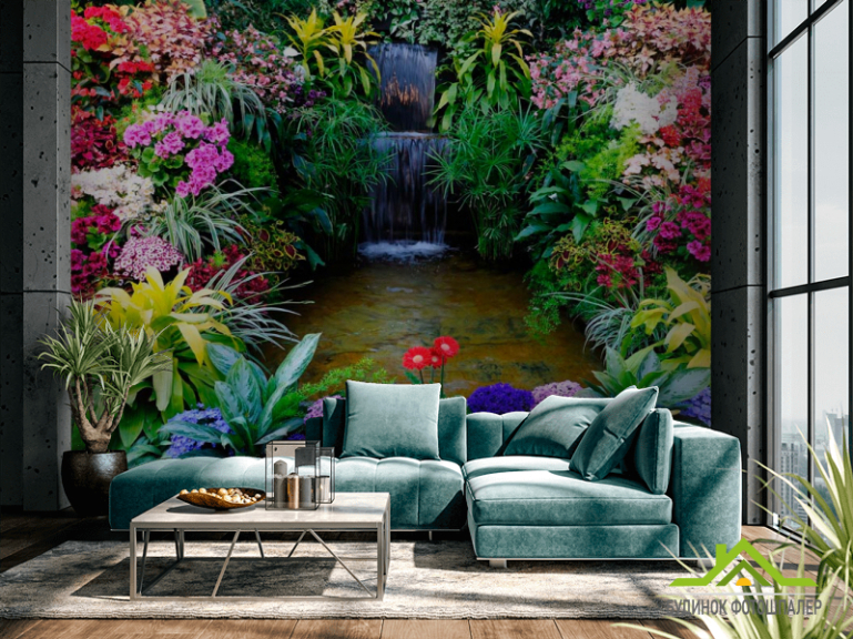Фотообои Водопад, цветы Фотообои Водопад, цветы