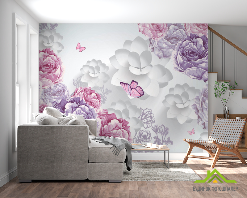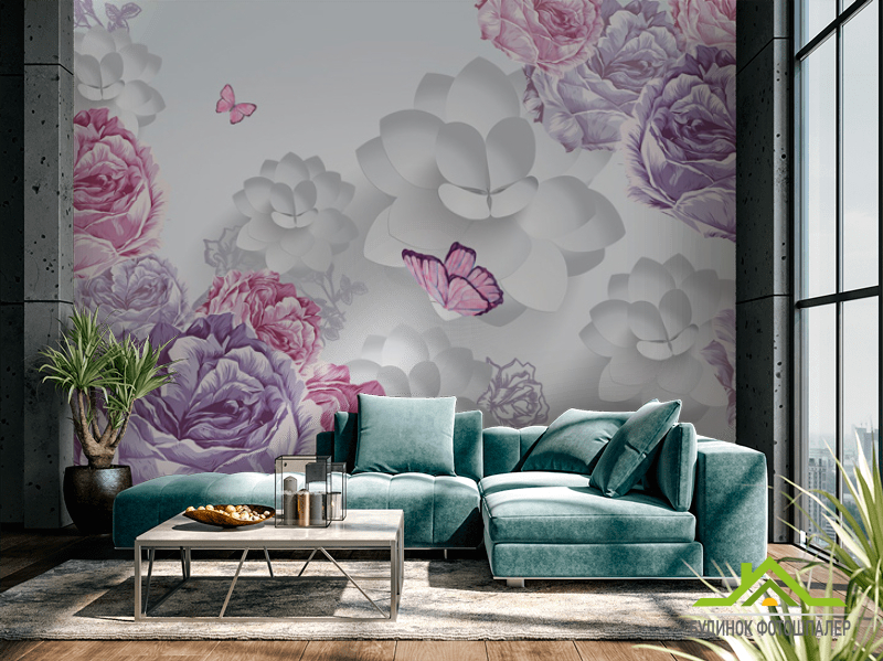 Фотообои Векторные цветы и бвбочки Фотообои Векторные цветы и бвбочки