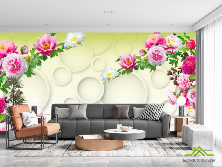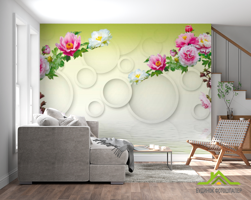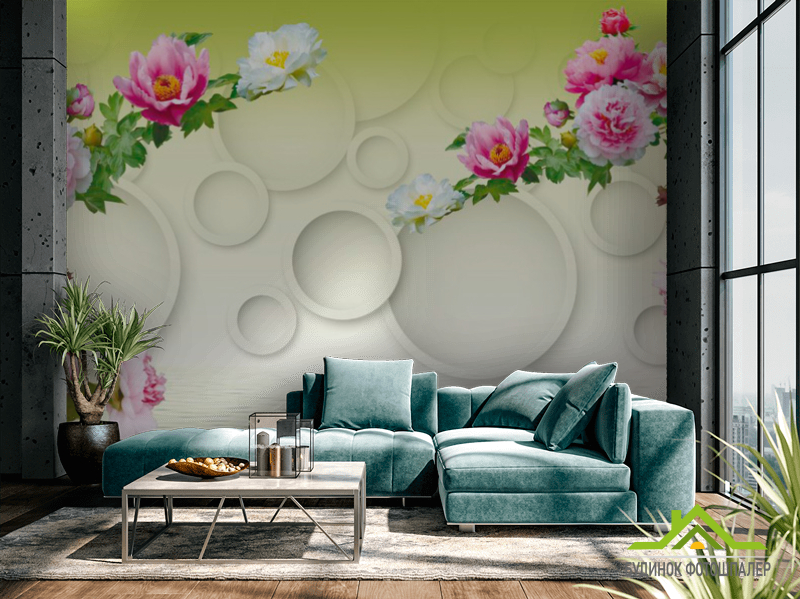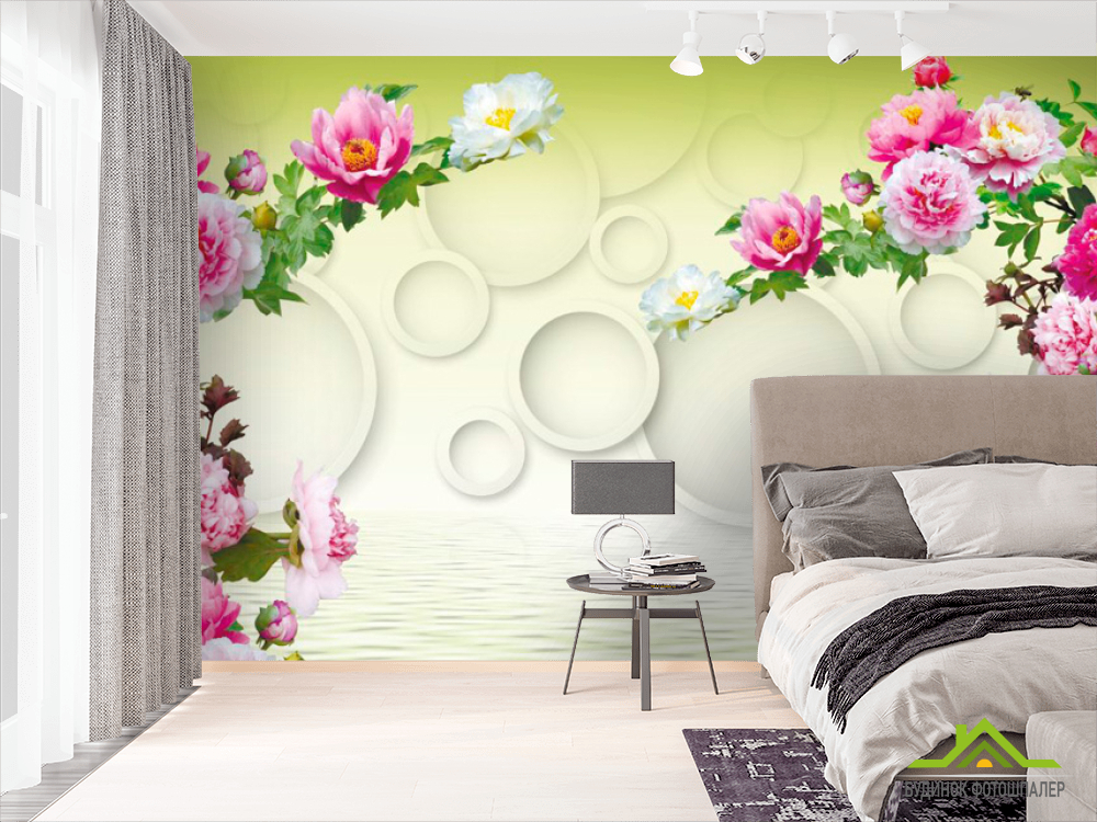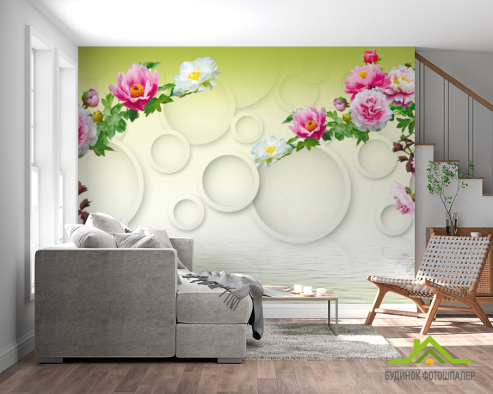 Фотообои 3д цветы с кольцами Фотообои 3д цветы с кольцами