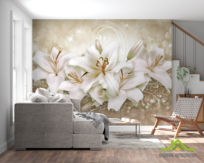 Фотообои Золотые лилии 3d Фотообои Золотые лилии 3d