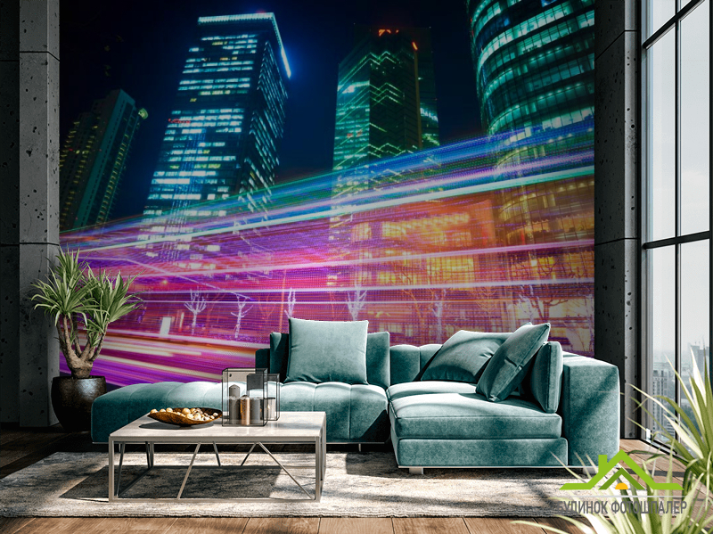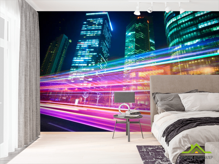 Фотообои Цветомузыка ночного города Фотообои Цветомузыка ночного города
