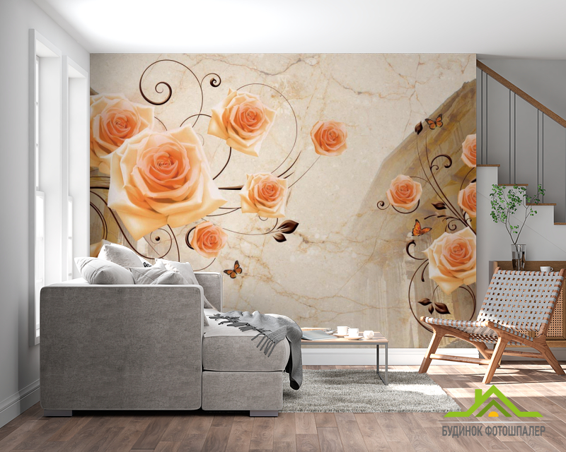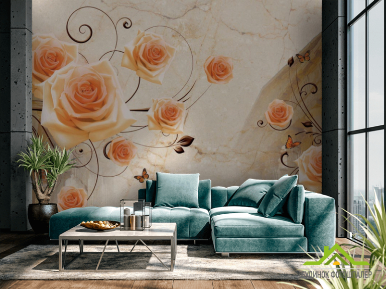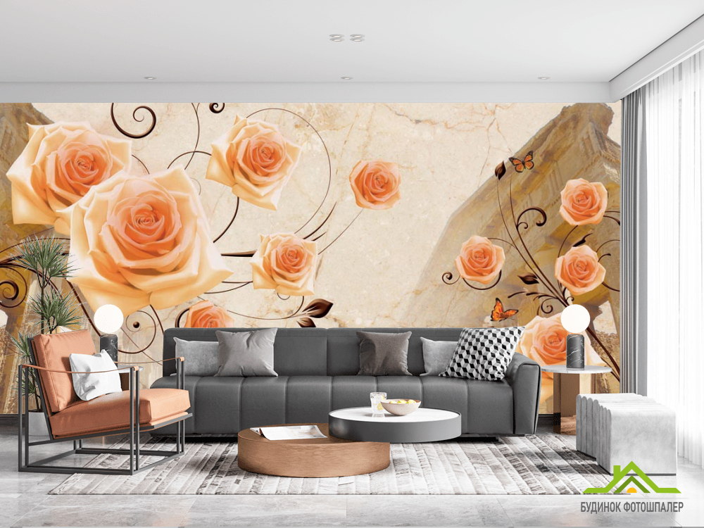 Фотообои Архитектура и розы 3д Фотообои Архитектура и розы 3д