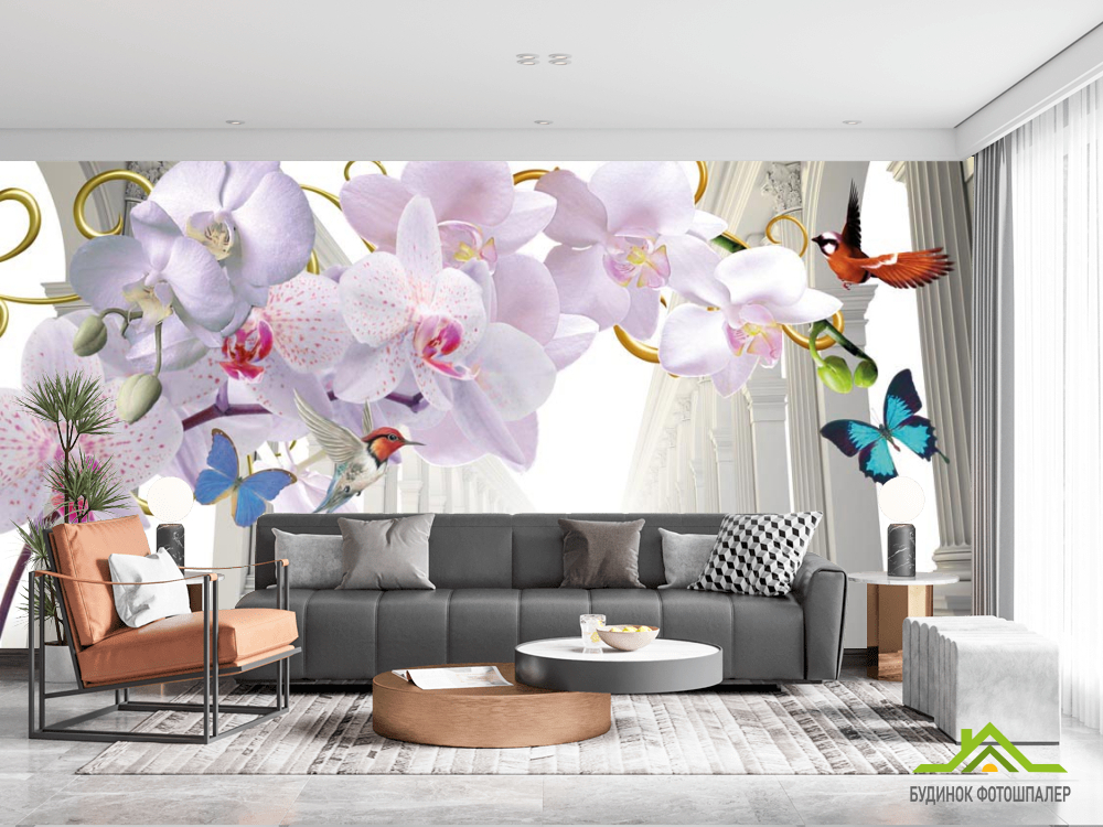 Фотообои 3d орхидея и корридор Фотообои 3d орхидея и корридор