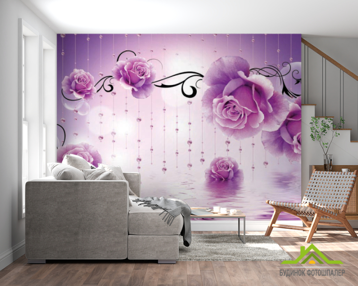 Фотообои Фиолетовые 3d цветы Фотообои Фиолетовые 3d цветы