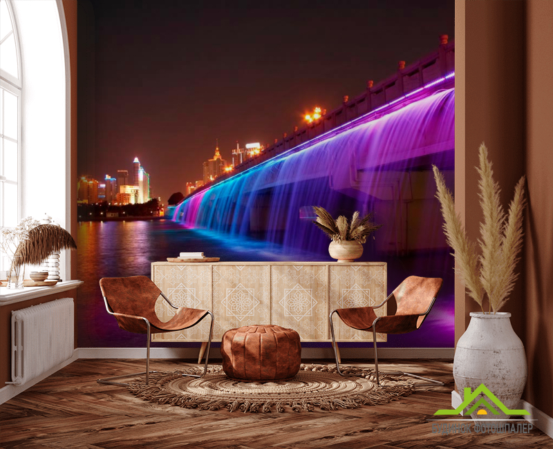 Фотообои Ночь мост цветомузыка Фотообои Ночь мост цветомузыка