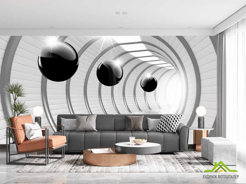 3д фотообои Тоннель с шарами