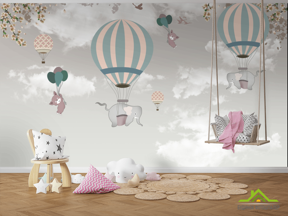 Фотообои Слон на воздушном шареДетские домики Фотообои Слон на воздушном шареДетские домики