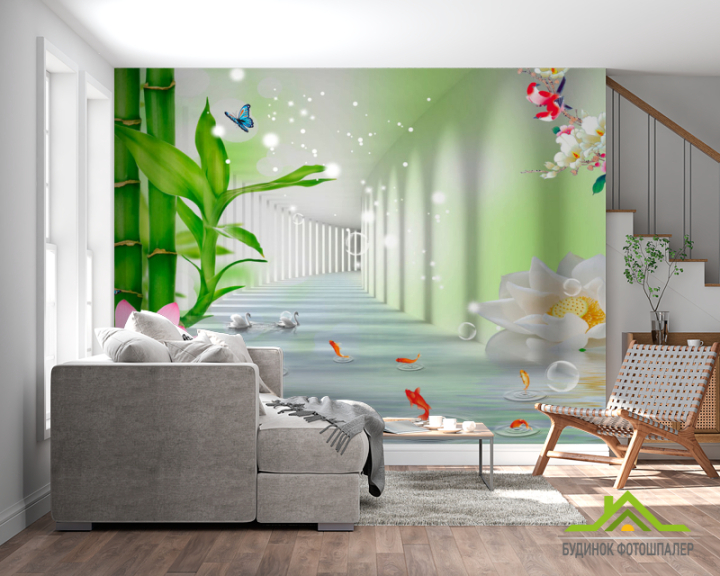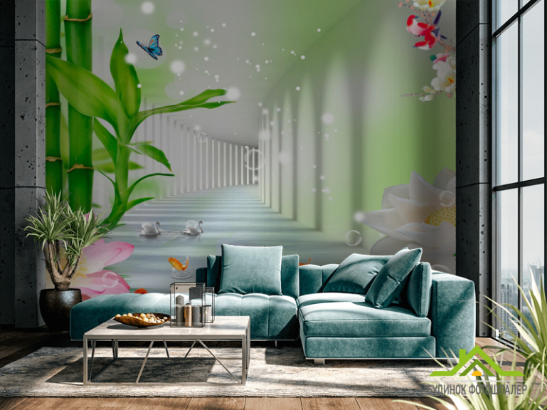 Фотообои Тонель с лотосами и бамбуком Фотообои Тонель с лотосами и бамбуком