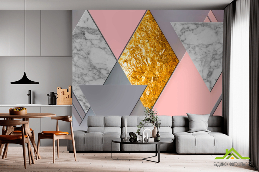 Фотообои серая геометрия с золотом Фотообои серая геометрия с золотом