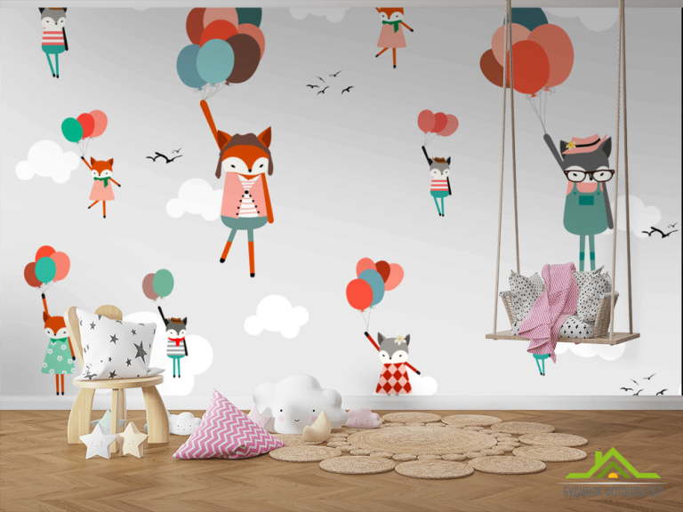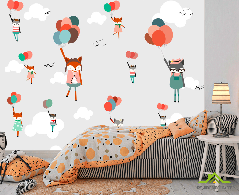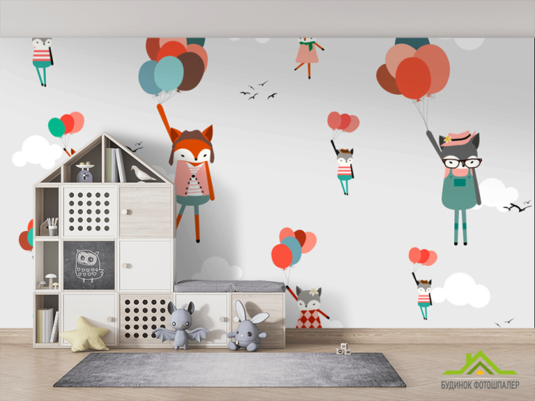 Фотообои Лисички на воздушных шариках