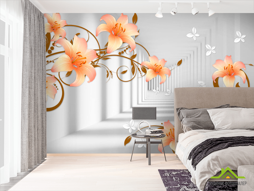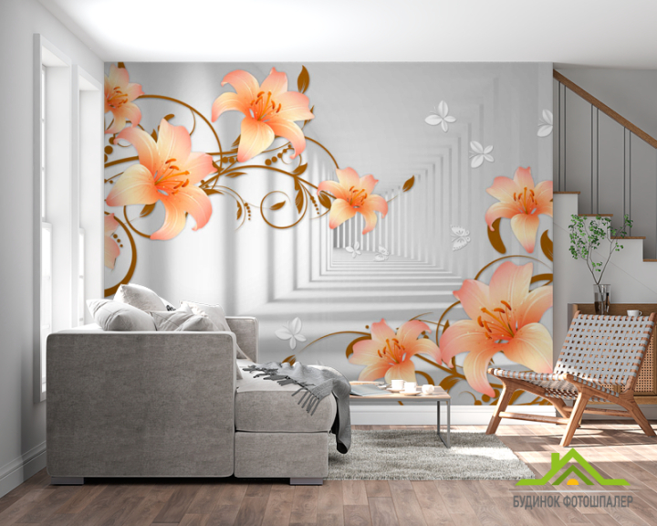 Фотообои Тонель и оранжевые лилии Фотообои Тонель и оранжевые лилии