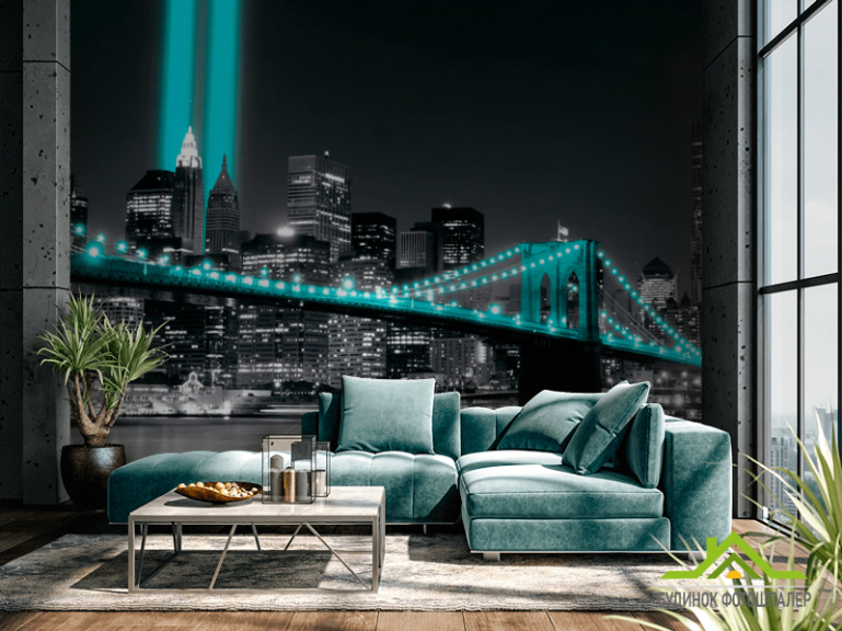 Фотообои Ночной город в бирюзовых огнях Фотообои Ночной город в бирюзовых огнях
