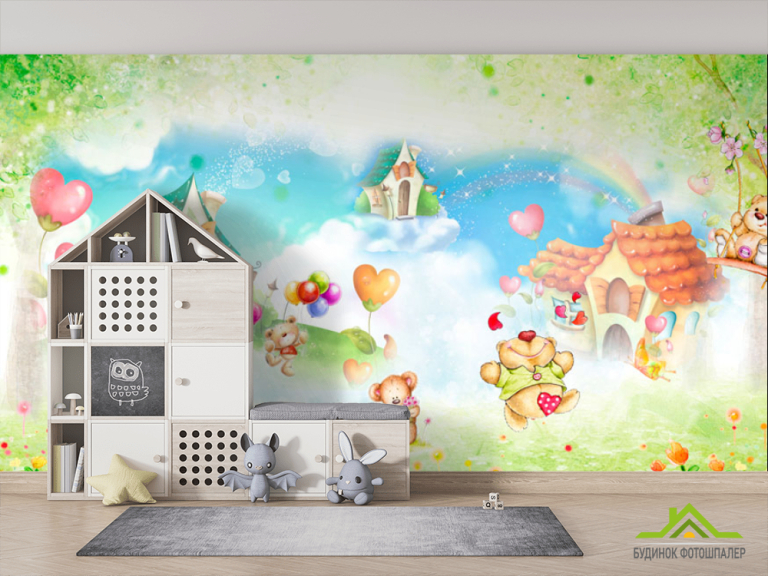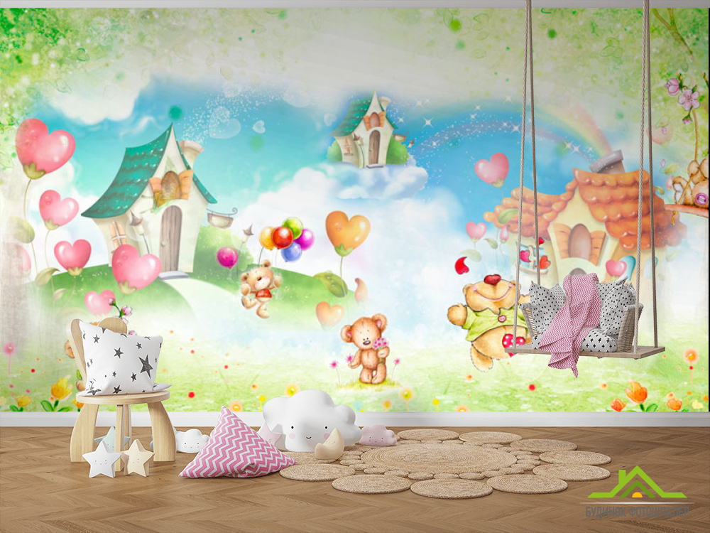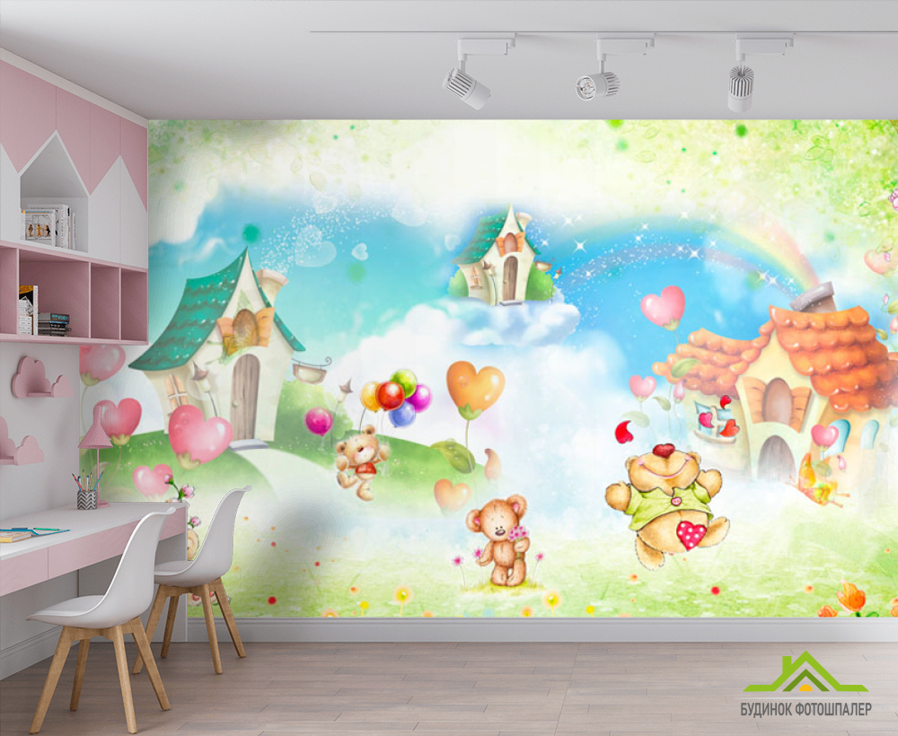 Фотообои Акварельне домики и мишки Фотообои Акварельне домики и мишки
