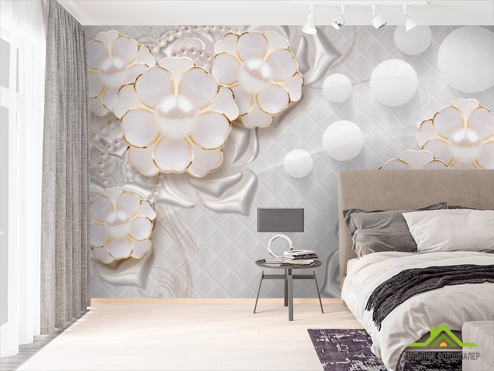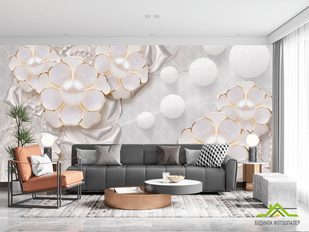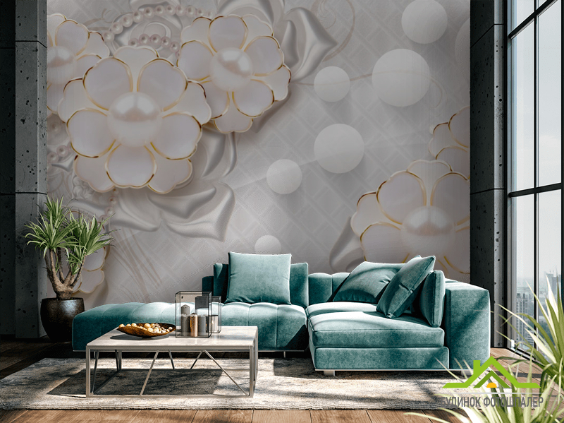 Фотообои Цветы с жемчужинами