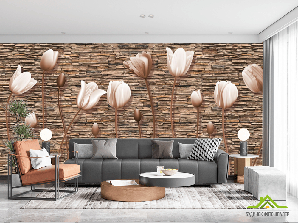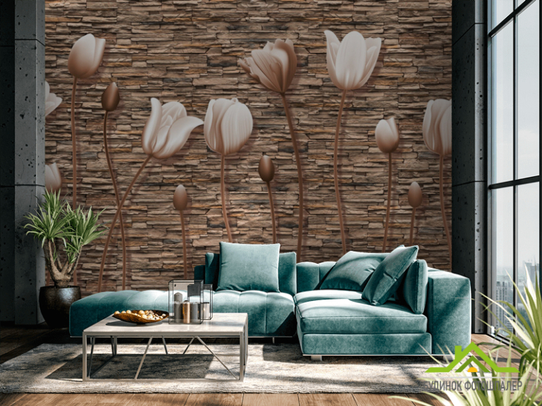 Фотообои Тюльпаны на каменном фоне Фотообои Тюльпаны на каменном фоне