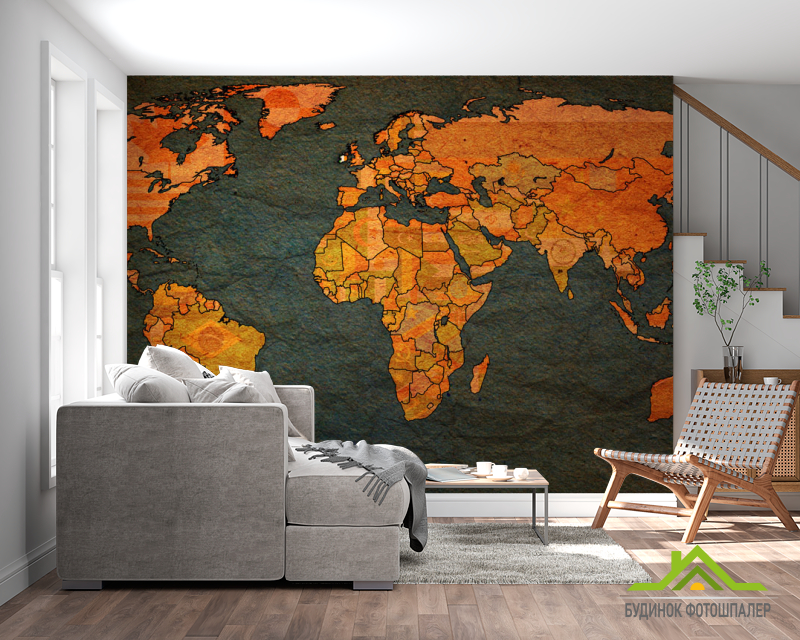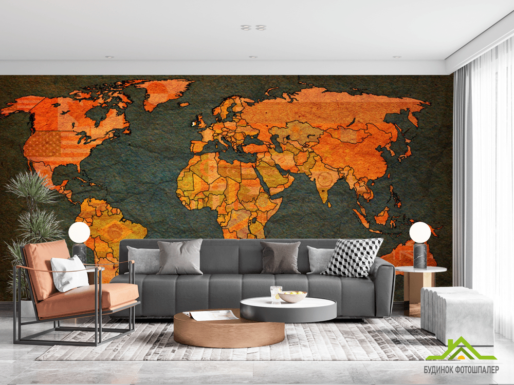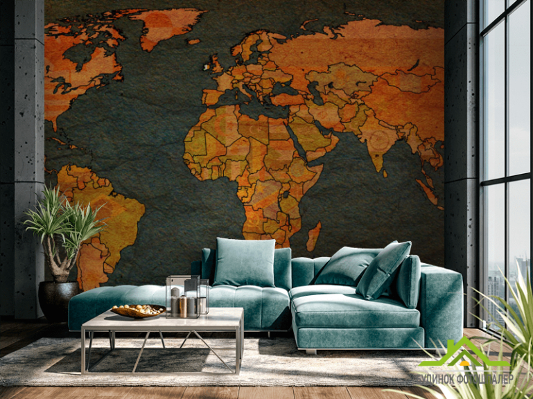 Фотообои Карта  мира на фоне бумаги Фотообои Карта  мира на фоне бумаги