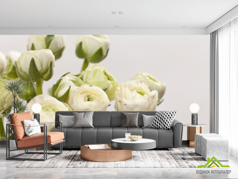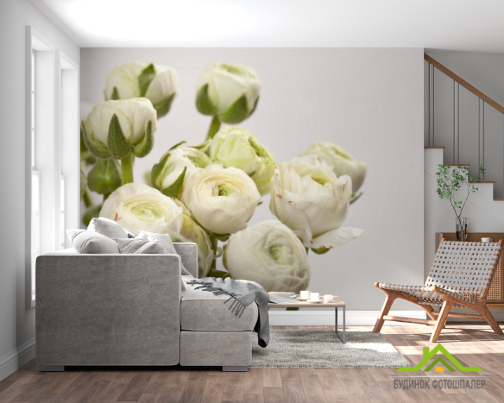 Фотообои белые круглые цветы