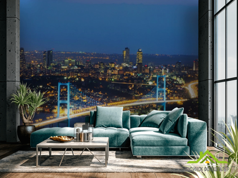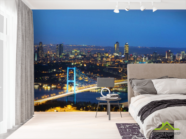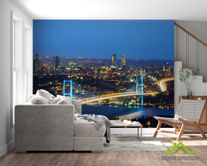 Фотообои мост с сине-желтыми огнями Фотообои мост с сине-желтыми огнями