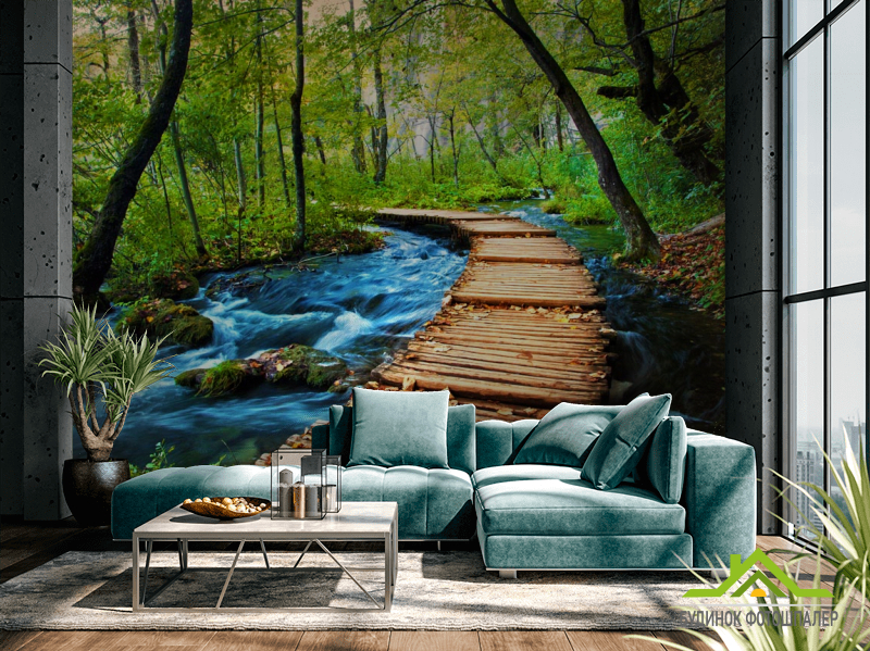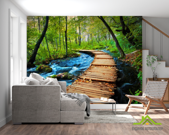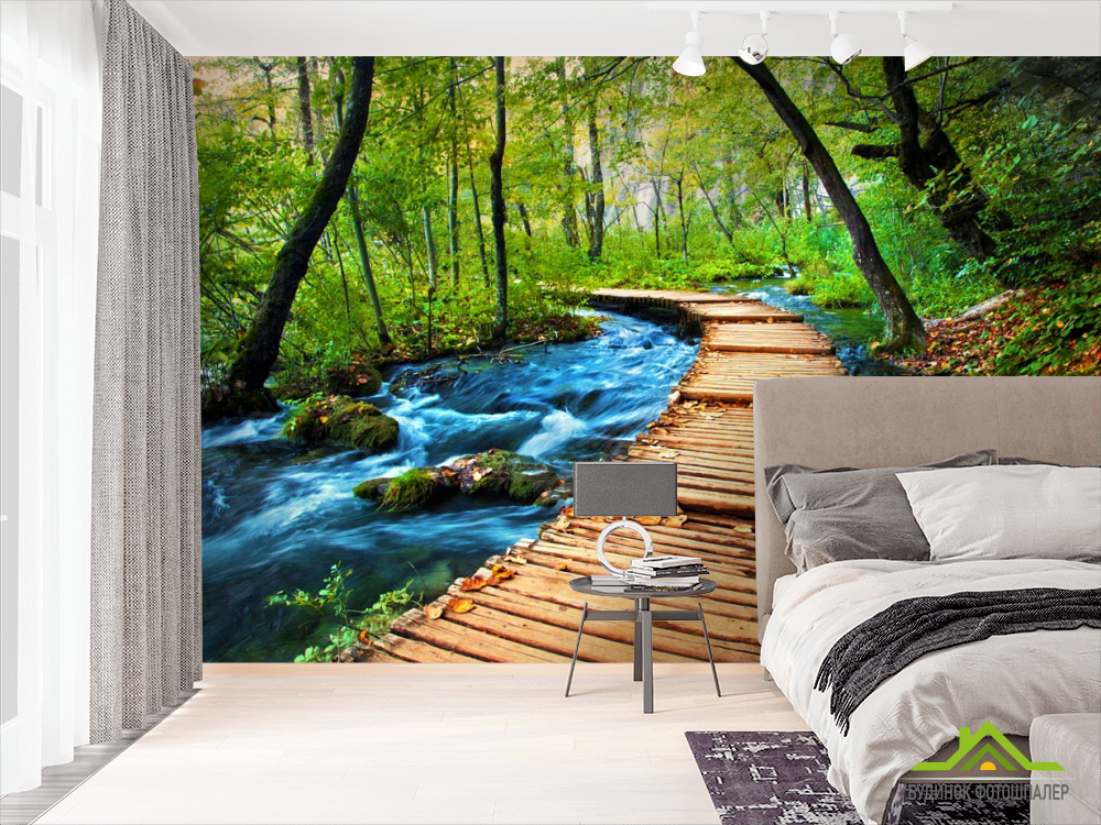 Фотообои деревянный мостик в лесу Фотообои деревянный мостик в лесу