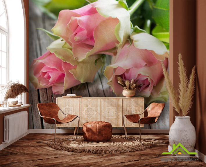 Фотообои розы на деревянном столе Фотообои розы на деревянном столе