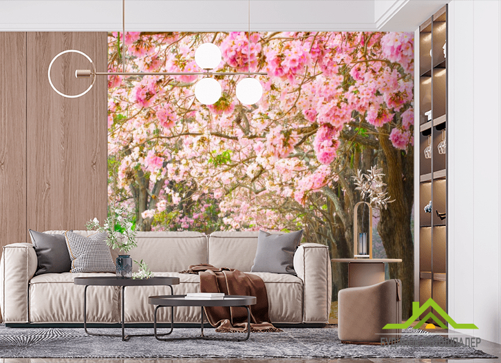 Фотообои аллея из розовых деревьев Фотообои аллея из розовых деревьев