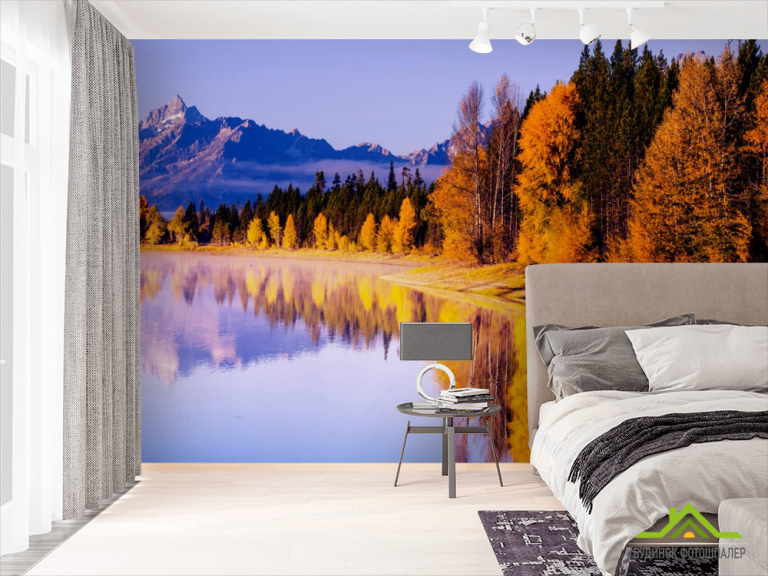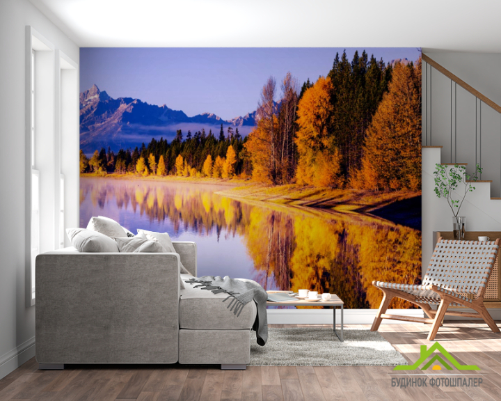 Фотообои осенние деревья над озером Фотообои осенние деревья над озером