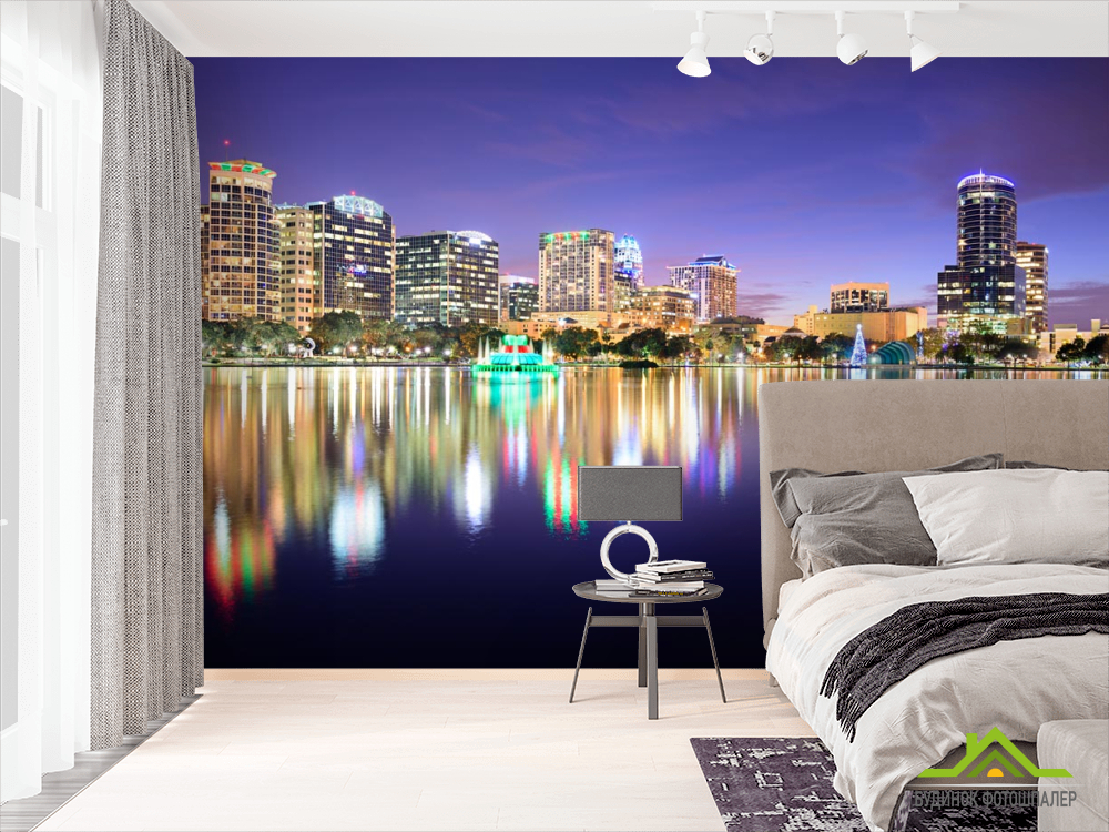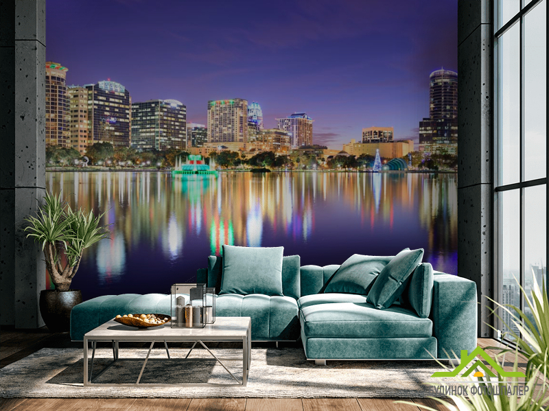 Фотообои рождественский город над водой Фотообои рождественский город над водой