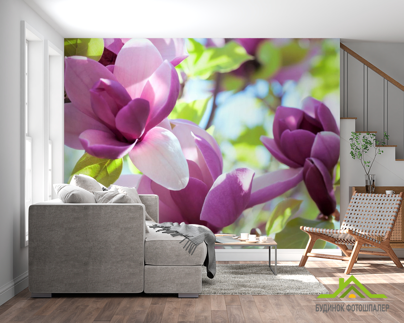 Фотообои бело-фиолетовые цветы на дереве