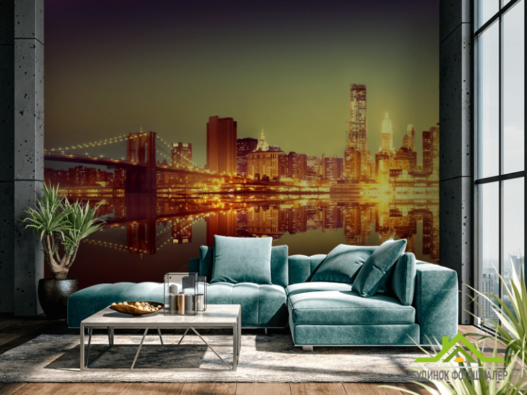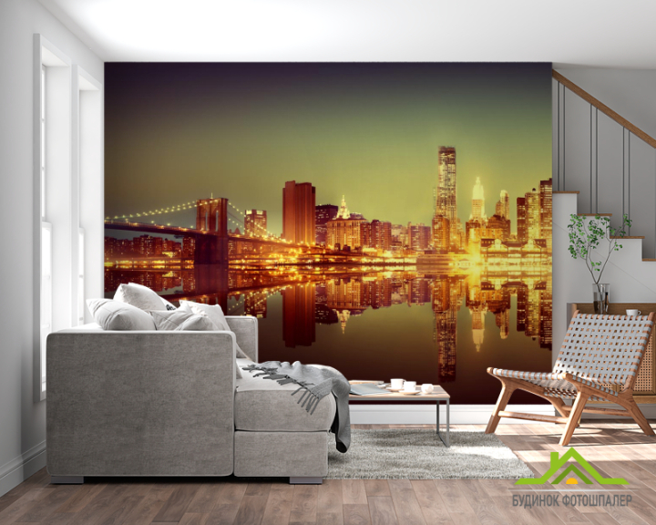 Фотообои город желтые огни