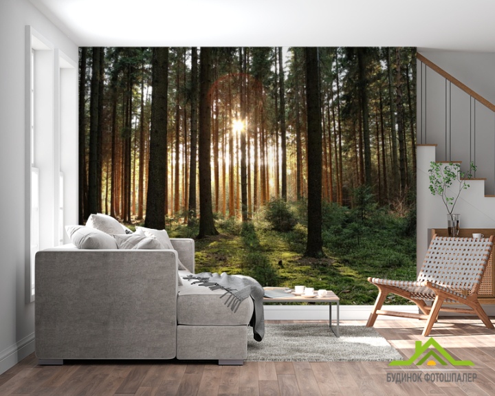 Фотообои солнце пробивается в лесу Фотообои солнце пробивается в лесу