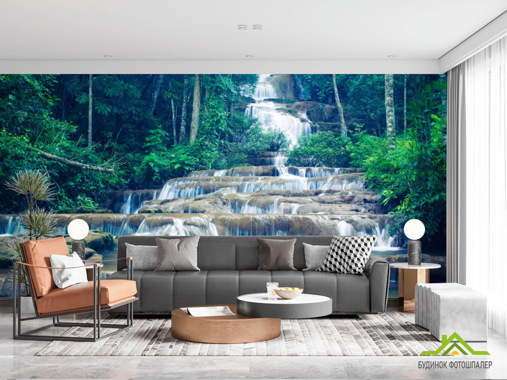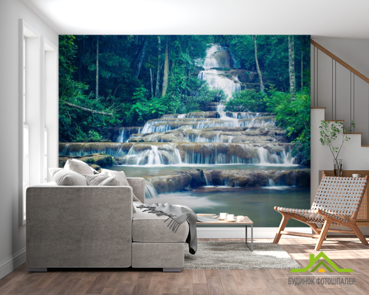 Фотообои ступенчатый водопад в лесу