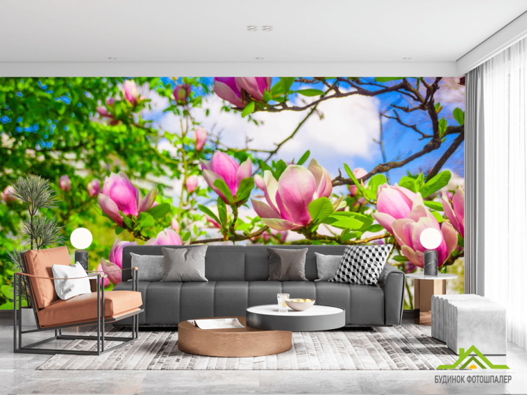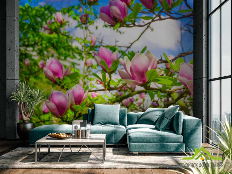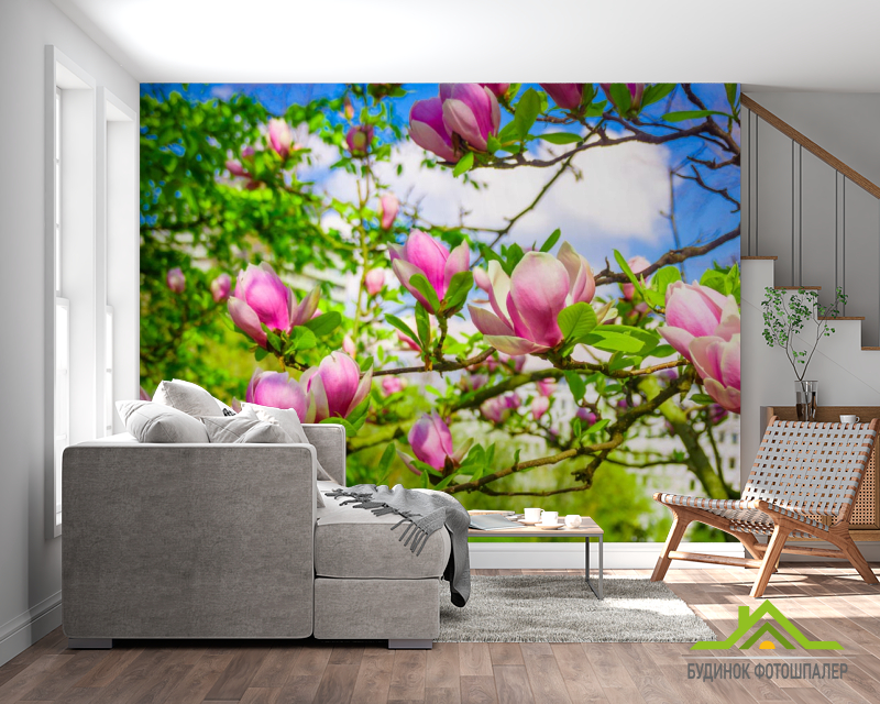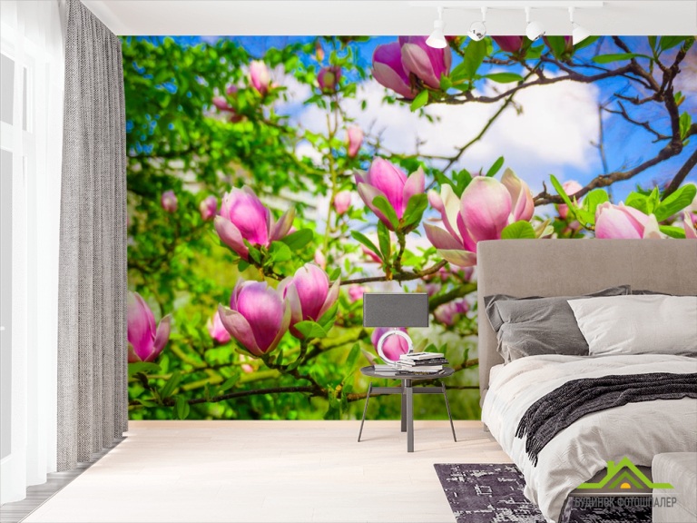 Фотообои магнолии розовые на деревьях