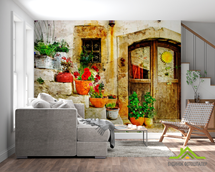 Фотообои Ступеньки с цветами Фотообои Ступеньки с цветами
