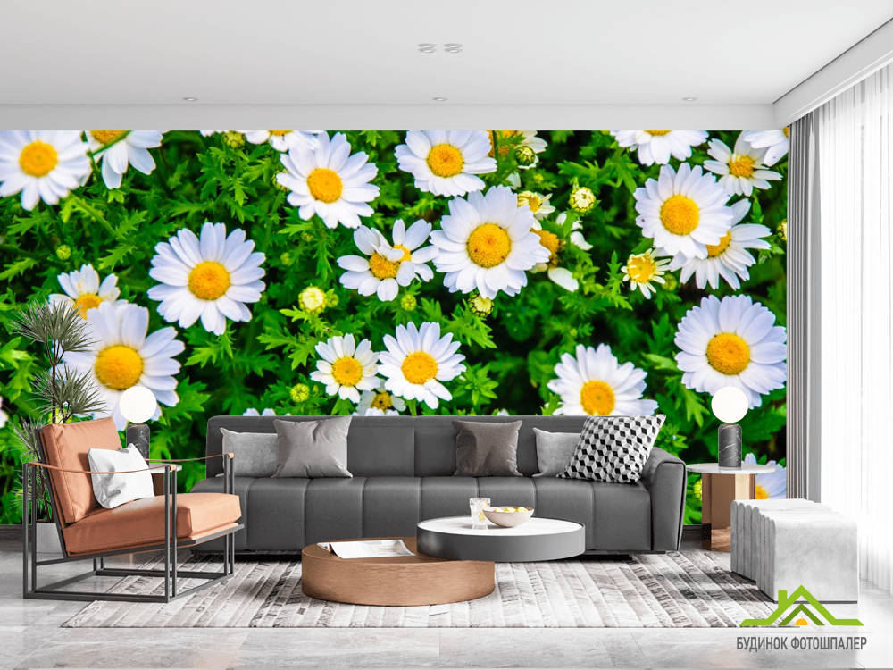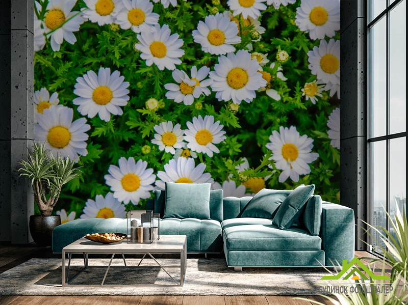 Фотообои ромашки и зелень