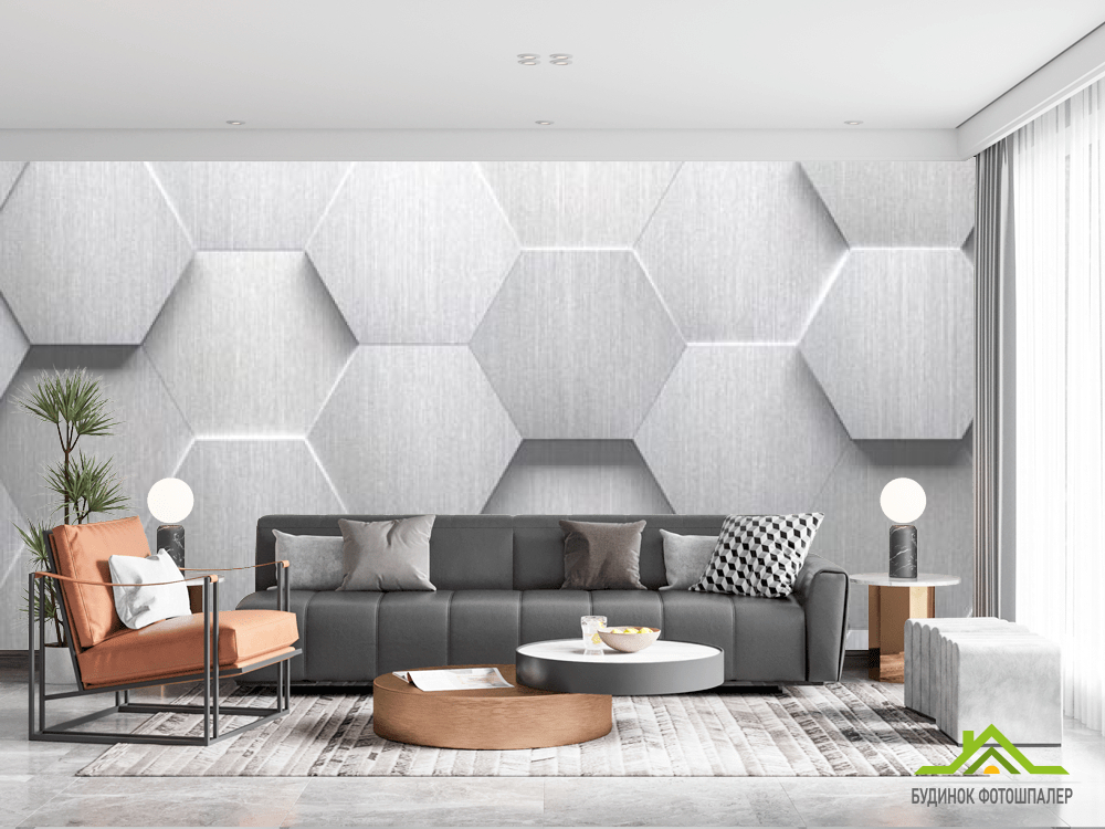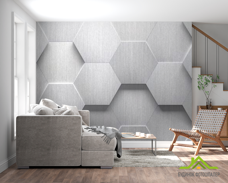 Фотообои серые выпуклые шестиугольники Фотообои серые выпуклые шестиугольники