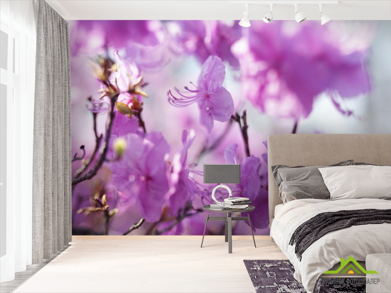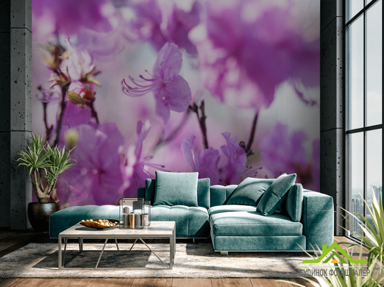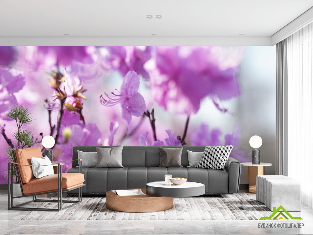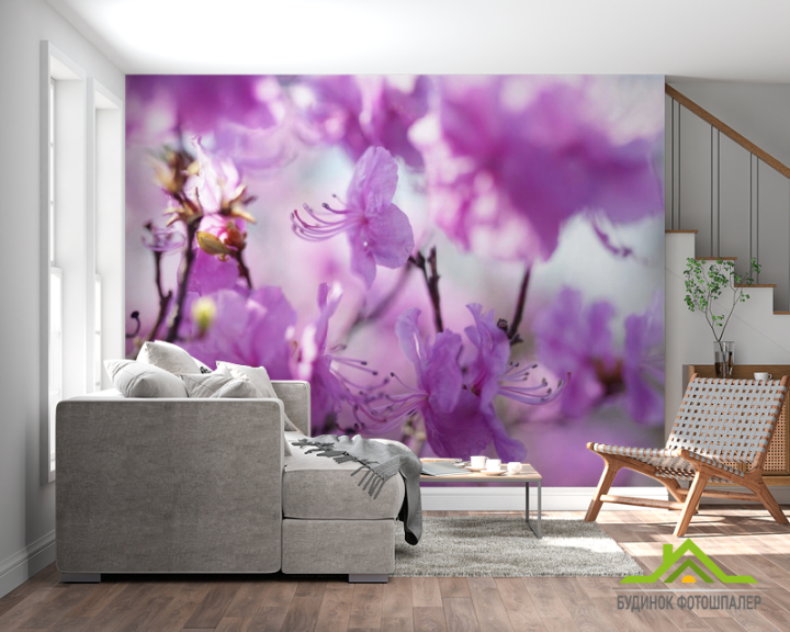 Фотообои сиреневые цветочки на дереве Фотообои сиреневые цветочки на дереве