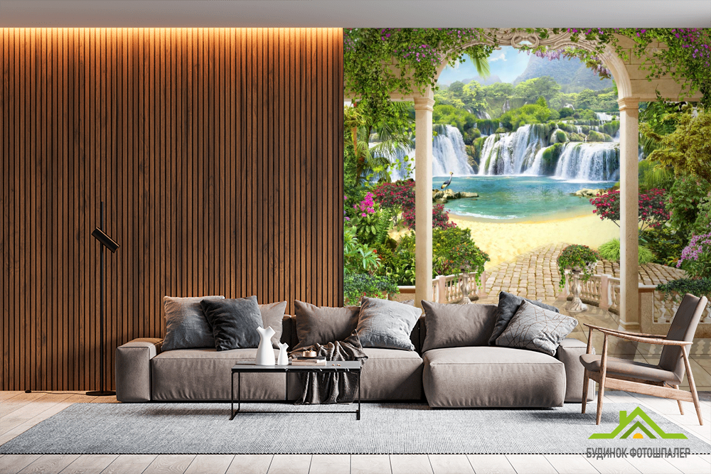 Фотообои вид с арки на водопад Фотообои вид с арки на водопад