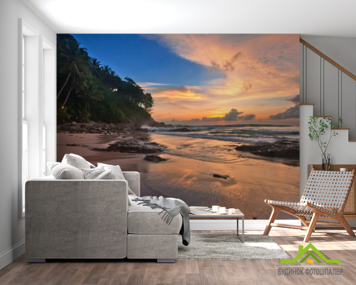 Фотообои закат на берегу моря Фотообои закат на берегу моря