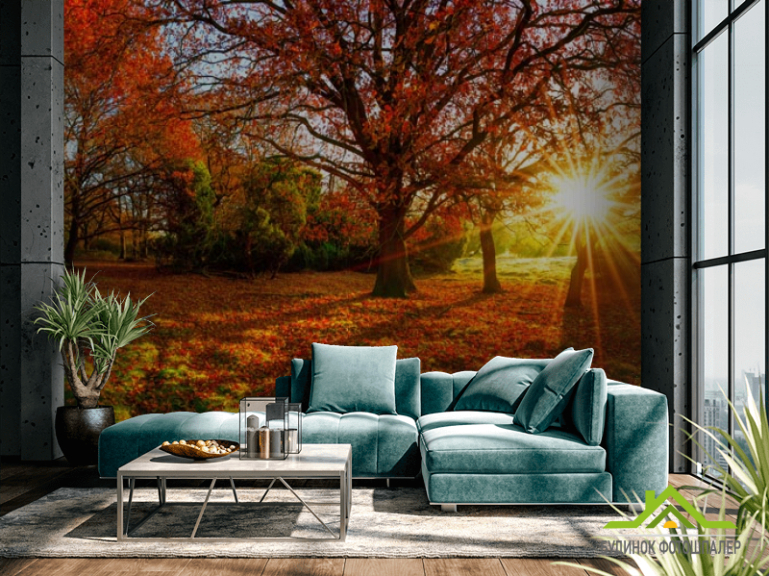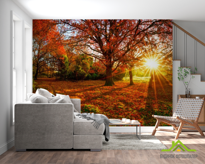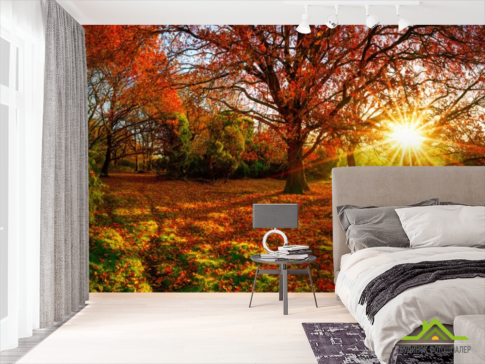 Фотообои красные опавшие листья Фотообои красные опавшие листья